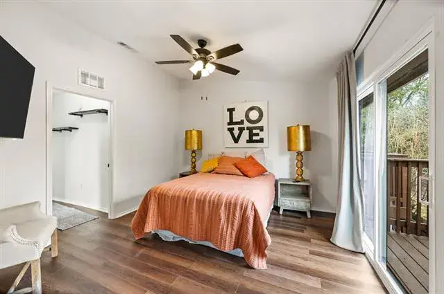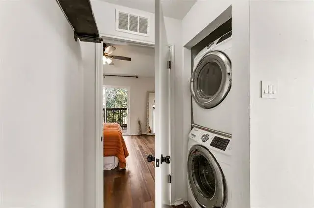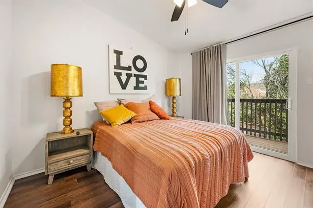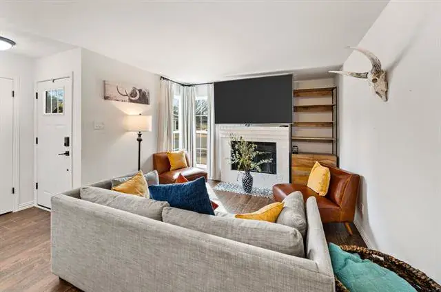 Welcome to this beautifully updated 2-bedroom, 2.5-bath condo in the highly desirable Shadowood Trail Condos, perfectly located just blocks from shopping and dining. This light-filled home offers the ideal blend of comfort, style, and convenience. The kitchen shines with quartz countertops and backsplash, upgraded cabinet hardware, and stainless steel appliances, creating a sleek and functional space for everyday living and entertaining. Each spacious bedroom features its own private ensuite bath with quartz vanity tops, skylights for natural light, and generous walk-in closets. Recent updates include new windows, new fencing, and modern light fixtures throughout, adding both value and peace of mind. The utility closet is conveniently located in the hallway between the two bedrooms for easy access. Step outside to enjoy a private top-floor deck, plus a covered patio with additional storage, perfect for relaxing or hosting friends. This move-in ready condo offers low-maintenance living in an unbeatable location.