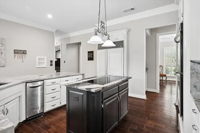 Cable TV Available, Central Vacuum, Chandelier, Decorative Lighting, Dry Bar, Granite Counters, High Speed Internet Available, Kitchen Island, Multiple Staircases, Natural Woodwork, Open Floorplan, Paneling, Pantry, Walk- In Closet(s)