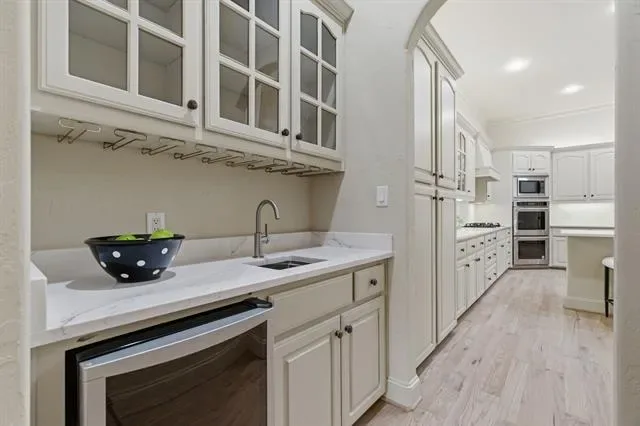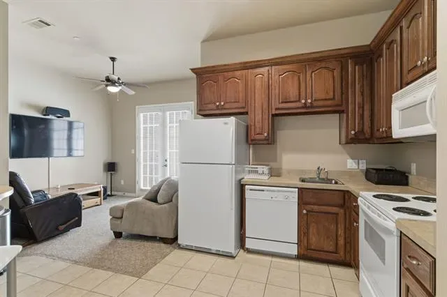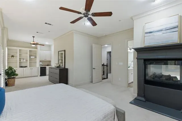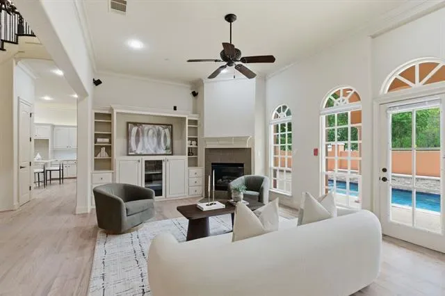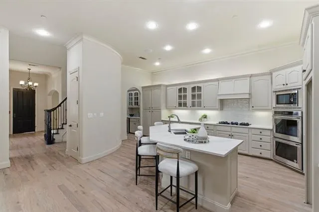 Welcome home to this beautifully maintained, one-owner custom townhome with a private pool and heated spa, ideally located in the charming Village of Colleyville. Quality finishes shine throughout, including a sweeping staircase, wraparound porch and balcony, hardwood floors, plantation shutters, and fresh interior paint. The updated kitchen is designed for both everyday living and entertaining, featuring an oversized island with seating for six, double ovens, gas cooktop, farmhouse sink, and luxe quartz countertops. The spacious primary suite offers a cozy two-sided fireplace and a generous sitting area, perfect for relaxing or working from home. Thoughtful main bedroom upgrades include a wet bar and coffee station, built-in beverage refrigerator, and custom shelving, all complemented by abundant natural light. The updated primary bath features dual sinks, a large soaking tub, fireplace, and an oversized walk-in closet with ample linen storage. Upstairs, you’ll find a versatile layout with a workout room, media or flex space, dedicated laundry room, and a full bath. Adding exceptional value is a turnkey, fully furnished one-bedroom apartment with a private entrance and garage. Complete with a full kitchen and washer dryer, the unit is leased through March 2027, generating $1,600 per month in income. This elegant and unique home blends old-world charm with modern comfort, all within walking distance to dining, seasonal events, and park gatherings. Enjoy nearby upscale shopping, including boutiques, home décor, floral shops, salons, and more. The HOA offers resort-style amenities, including a pool with an updated cabana and a full fitness center. The Village is a vibrant yet quaint community, perfect for both living and entertaining.