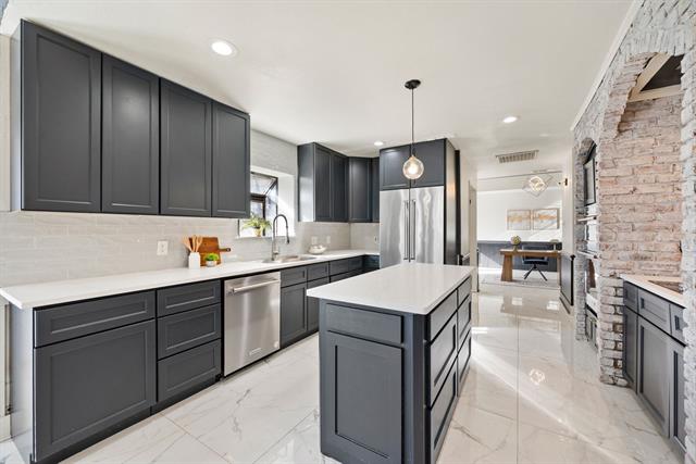Welcome to this beautifully updated single-story brick home offering endless possibilities with the rare blend of country-style space right in the heart of the city and best of all, NO HOA. Situated on over .55 of an acre, this property is framed by mature trees in both the front and backyard, creating a private and inviting setting. A driveway runs the full length of the lot and is secured by an electric gate, providing ample parking along with a carport and extended space for guests, hobbies, or recreational vehicles. Inside, the home features stylish tile flooring throughout, decorative lighting, and elegant wainscoting that add warmth and character. The eat-in kitchen offers generous counter space and built-in shelving to meet all your storage needs. The primary suite is a relaxing retreat with a spa-like bathroom featuring a soaking tub and a dual waterfall shower designed for a luxurious experience. Step outside to the covered back patio overlooking the expansive backyard, where the possibilities are endless. There is plenty of space to create your dream outdoor oasis, add a pool, RV parking, workshop, guest house, or expand the existing home. Located within the award-winning GCISD, this property combines space, flexibility, and an unbeatable location. Opportunities like this are rare, come see your chance to own a piece of comfort and possibility.
