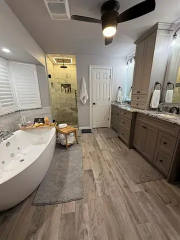 Lovely family home on HALF ACRE in Colleyville! Priced to sell! This well maintained home has 4 bedrooms and 4 full bathrooms and is located in the highly acclaimed HEB ISD, but owner can easily apply to go to GCISD if desired. As you walk in the front door you have an office on your right and formal dining room on your left. The kitchen is well equipped with an electric cooktop and oven, built-in microwave, separate area for coffee bar, and canned lighting. There is gas running to the property so you can easily change to gas appliances if desired. The living room is spacious with vaulted ceilings and a fireplace with hearth. One bedroom is split from the other bedrooms and is near the kitchen with it’s own bathroom directly across. On the opposite side of the home, you will find 3 bedrooms and 2 full bathrooms. Both of these bathrooms have been completely custom remodeled with high end finishes. The master retreat is like a spa with a separate jacuzzi tub and his-hers split closets. Upstairs you will find a huge gameroom-family room with a kitchenette, huge walk-in closet, and full bathroom. This space would make a great mother-in-law suite or earn some extra income renting this out as a studio apartment. In the backyard, you will find an expansive deck with outdoor living as well as a large pool and raised spa. So many updates to this home including new covered patio with entertainment area, new carpet in bedrooms, new flooring in master, 2023 new 18-SEER HVAC units both up and downstairs, new wood perimeter fencing, all windows have been replaced with double hung-double paned high efficiency windows, blown insulation, radiant barrier, completely remodeled upstairs, new pool cleaner, new pool equipment in 2021 with new coping and tile, replaced wood deck with 100 year composite decking, french drain system, and much more. This home has it all! Seller offering $10,000 concession to buyer for painting, decorating, etc with full price offer.