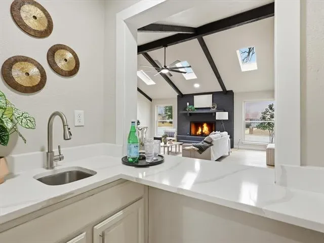 Discover the perfect blend of luxury and functionality in this STUNNING 5-bedroom, 3.5-bathroom residence located in the highly sought-after HEB School District. Designed for both entertaining and private relaxation, this home offers a unique layout, rarely found in todays market. The heart of the home features an eat-in kitchen with tons of counter space, all new appliances and complete with a wet bar for effortless entertaining. Connects to the massive living room which has tons of natural light with SKYLIGHTS and an attached SUNROOM. The ground floor features 4 bedrooms and 2.5 bathrooms. The fifth bedroom is perfect for a home office, guests or MULTIGENERATIONAL living. This suite includes an attached bathroom and a separate exterior entrance, providing complete privacy and independence for long-term guests or family members. The primary suite, located on the second floor, serves as a private sanctuary. It boasts his-and-hers closets and a spa-inspired ensuite bathroom featuring separate vanities, large walk in shower, freestanding tub and a RARE, built-in private SAUNA. It is the ultimate space to unwind after a long day. Step outside into your own private resort. The expansive backyard is anchored by a sparkling diving pool and a covered outdoor patio featuring an outdoor kitchen and bathroom. This is an amazing opportunity to have a luxury updated home in an upscale Colleyville neighborhood.