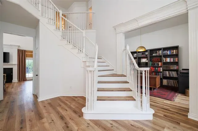 Nestled on private gated street within the prestigious Woodland Hills community, 3115 Woodland Heights Circle offers an exquisite blend of secluded luxury and modern sophistication. This 4-bedroom, 3.5-bathroom home greets you with an immediate sense of elegance, highlighted by updated flooring and designer lighting that flows through the expansive floorplan. At the heart of the home, the kitchen has been meticulously reimagined with stunning new countertops, featuring a central breakfast bar for casual dining and a sun-drenched breakfast room for morning gatherings. The spacious master suite with a dedicated sitting area and bath complete with dual sinks, separate vanities, and generous his-and-hers walk-in closets. Flexibility is key with a massive upstairs bonus room, perfectly suited as a media room or a vibrant game room to fit your lifestyle. The interior’s refinement is matched only by the exceptional outdoor living space, which serves as a private oasis for relaxation or grand-scale hosting. Recent exterior enhancements include pool resurfacing with updated tile work, all framed by an expansive, newly extended flagstone side patio for al fresco dining under the Texas sky. Don''t miss the side yard that could be fenced for pets or play! The location is truly everything here! Enjoy the convenience of being just minutes from the highly anticipated new HEB grocery store opening this spring, with a 5-minute drive to major highways and only 10 minutes to DFW Airport. Situated within the highly sought-after Grapevine-Colleyville ISD and Heritage Schools, this residence represents a rare opportunity to own a beautiful home in one of Colleyville’s most exclusive and perfectly positioned locations.