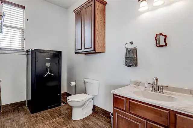 Aviation enthusiasts will appreciate the exceptional aircraft accommodations, including a 50×60 airplane hangar with a 42’ bifold door, providing ample space for aircraft storage and operations. The hangar is equipped with an air-conditioned machine shop, pilot office, private bathroom, and three concrete aircraft tie-downs. Enjoy direct taxiway access to the community’s lighted private asphalt runway featuring a GPS approach, supporting both day and night operations.