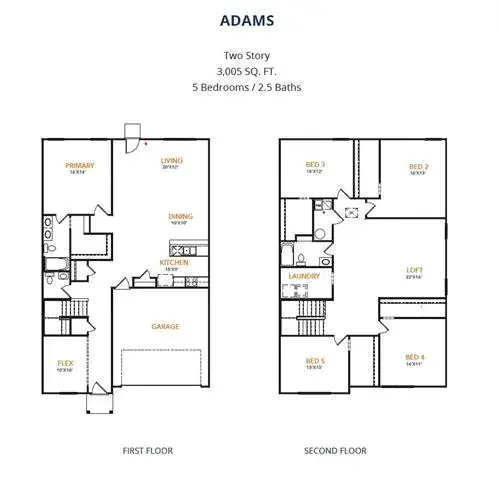 MLS# 21095489 – Built by NHC – Ready Now! ~ The Adams Plan from our Liberty Series offers an unbeatable combination of style, space, and affordability. This spacious 2-story home features 5 bedrooms, 2.5 bathrooms, a 2-car garage, and 3,005 square feet of thoughtfully designed living space. Step into the versatile flex room – ideal for a home office or sitting area. Continue past the staircase and convenient half bathroom to the bright and open kitchen with a pantry and central island, perfectly positioned to overlook the dining area and spacious living room. The main-level primary suite is your private retreat, featuring a large walk-in closet and an en suite bathroom complete with a dual vanity and tub,shower combination. Upstairs, you’ll find four additional bedrooms, a full bathroom, a spacious loft, and a conveniently located laundry room.