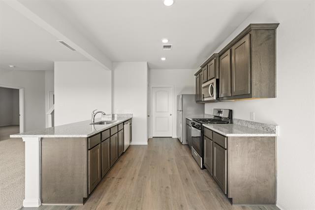 The two-story Cypress boasts four bedrooms, two-and-a-half bathrooms and an attached two-car garage on an oversized lot. The kitchen features wood cabinets, granite countertops and stainless-steel appliances, with an adjacent dining room perfect for family meals. With a seamless flow between the kitchen, dining and family rooms, the spacious living areas offer room for entertaining, from football watch parties to cozy movie nights. The downstairs master suite includes a bedroom, bathroom and walk-in closet. Upstairs, the secondary bedrooms each have walk-in closets, providing additional storage. Other storage options, including a spacious pantry, numerous cabinets and linen closets, are also spread throughout the home for extra storage and organization.