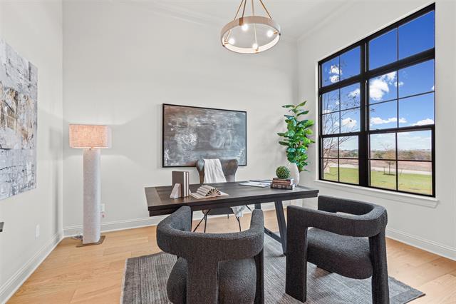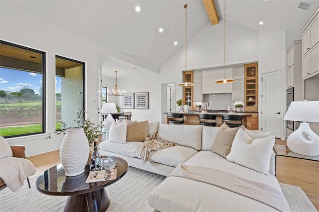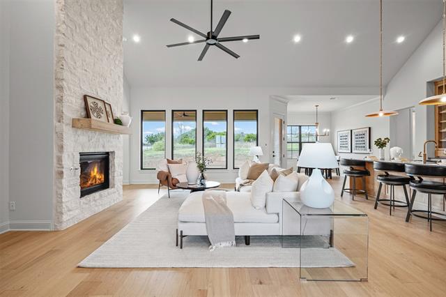 Experience luxury living in this stunning Modified Prestwick Signature Series home nestled in the desirable subdivision of Putteet Hill. Set on just over 2 acres, this 4-bedroom, 3-bathroom masterpiece offers 2,990 sq. ft. of thoughtfully designed living space, plus a game room, private study, and a 3-car garage. From the moment you arrive, the 8-foot iron entry door welcomes you into an open-concept living, dining, and kitchen area that exudes sophistication. The spacious living room features a floor-to-ceiling stone fireplace with a rich wood mantle, complemented by large windows that fill the space with natural light. The gourmet kitchen is a showstopper—complete with a large center island featuring dual sinks and breakfast bar seating, gas cooktop, double ovens, microwave, and abundant cabinetry for storage and style. The primary suite is a true retreat with an extraordinary ensuite offering dual vanities, an oversized double shower, a freestanding soaking tub, and a massive walk-in closet. A flexible game room and French-door study provide space for both productivity and play. Step outside to enjoy the stained beadboard porch ceilings, perfect for relaxing evenings overlooking your private acreage and beautiful sunsets. The epoxy-floored 3-car garage and side driveway offer plenty of room for guests and hobbies. Ideally located just off Highway 377, you’ll enjoy peaceful country living with an easy commute to the Metroplex. Come see it—life happens here!