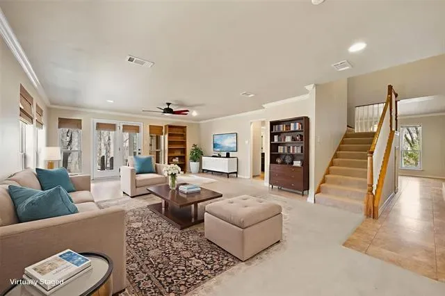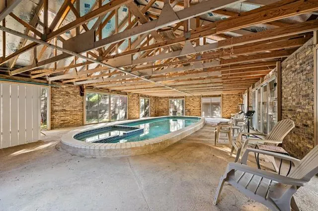 $25,000 allowance at closing for closing costs, rate buy-down, buyer''s choice. Tucked at the end of the street on a .77-acre, tree-filled lot, this home offers a level of privacy that’s hard to find. With Veterans Park bordering the north side, the setting feels secluded, quiet, and completely removed from the typical neighborhood backdrop. Inside, the 1970s contemporary design delivers natural light, architectural interest, and a layout that adapts to how people live today. Walls of windows frame the surrounding trees, creating a constant connection to the outdoors. A living area off the entry features a brick fireplace. With French doors and a large storage closet, it would make a wonderful office. The dining space flows easily into an updated kitchen with double ovens, gas cooktop, a large island, walk-in pantry, and instant hot water. A spacious bonus room off the kitchen works well as a media or game room, complete with built-ins and a second fireplace. The first-floor primary suite is set apart for privacy, featuring a walk-in closet, separate vanities, an updated shower, and direct access to the pool area. Upstairs offers two secondary bedrooms, a full bath, and a large flex space with vaulted ceilings, wet bar, and expansive windows overlooking the wooded lot. The outdoor setup is where this property separates itself. A covered patio overlooks a peaceful pond, while the pool and spa are housed in a dedicated structure with skylights and patio doors that open for fresh air. Behind it, a detached 4-car garage includes a workshop area and half bath, topped by studio-style guest quarters with a partial kitchen, full bath, and generous storage. Flexible, private, and designed for the way people actually use space today. This is a property you need to experience in person to fully appreciate.