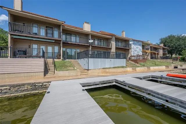 Lake living with a stunning view of Lake Granbury. This 1200 sq ft townhome with open concept living area, granite countertops, wood burning fireplace, deck over looking the water. 2 bedrooms located upstairs both have full baths. The community offers many amenities including community pool, clubhouse, unlimited golf, pickleball, tennis courts. Spacious 2 car garage, deck with underneath storage.