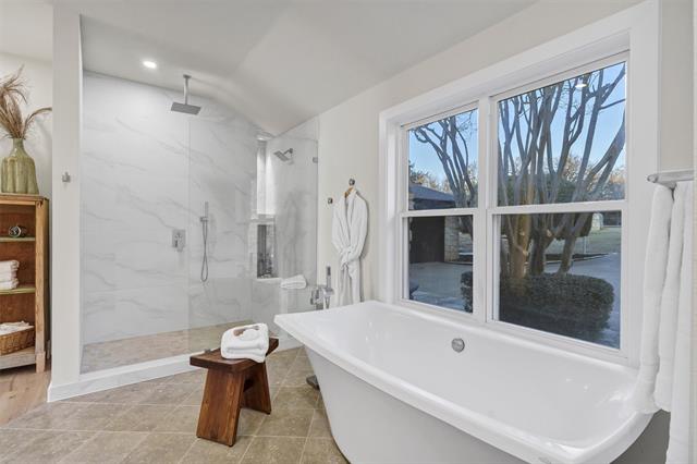 The entire first floor primary suite is a newly created space offering beautiful lake views and a new bathroom with a standalone soaking tub. New wood flooring, carpet, and a new air conditioning system complete the interior updates.