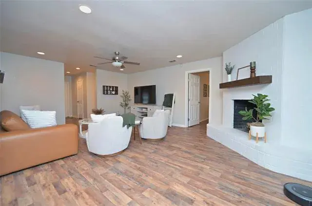 Beautiful custom built 2,164 sq. ft. Granbury Home loaded with charm and modern updates on large corner lot in DeCordova Estates Community gated, 24 hour Guard Station with cabana, golf, tennis, pickleball, volleyball, basketball, clubhouse, dining, marina and fitness center just minutes away! Rear Golf Cart Garage and New Roof in 2025! Thoughtfully updated floorplan with luxury v plank and tile floors, recessed and accent lighting, ceiling fans and neutral colors. Large Chef’s Kitchen in the heart of the home with an abundance of cabinets, complete with pull handles, stainless steel appliances, tiled backsplash, smooth top electric cooktop, separate oven, built-in microwave and dishwasher. Over sized Laundry with numerous storage cabinets and space for freezer, folding table or wine cooler. Bright Dining area with double glass doors open to a large 25×13 covered back patio, perfect for cook outs, guest or family gatherings. Spacious Family Room with corner brick W-B fireplace and front Bonus Room with wide double stained barn doors, opens to an Office and 2nd Living, optional 2nd Dining, Game room, work out room or Children’s Retreat. Owner’s Suite with updated bath, two separate vanities, side make-up vanity and two walk-in closets. Side 20×23 covered parking with multiple built-in storage cabinets, and an expanded driveway, perfect for 3rd car or truck. Huge wood and wrought iron fenced backyard, large storage building and much more! Schedule your showing today to see this spotless, beautifully updated home with endless possibilities! FYI Price includes owner paying $10K HOA Membershio fee.