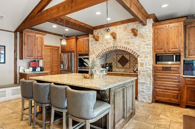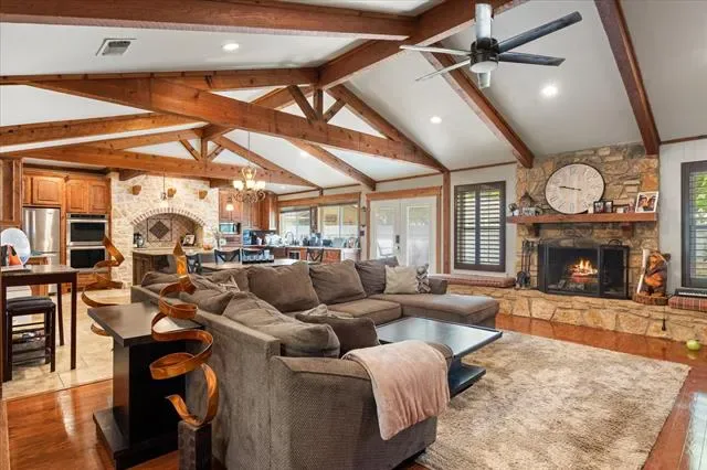 Nestled in the prestigious DeCordova Bend Estates, this Southwestern-style stone gem combines classic character with an incredible outdoor lifestyle. Perfectly situated on a level interior lot near Lake Granbury, this property offers the rare combination of a spacious main home, a dedicated guest suite, and a private backyard oasis.