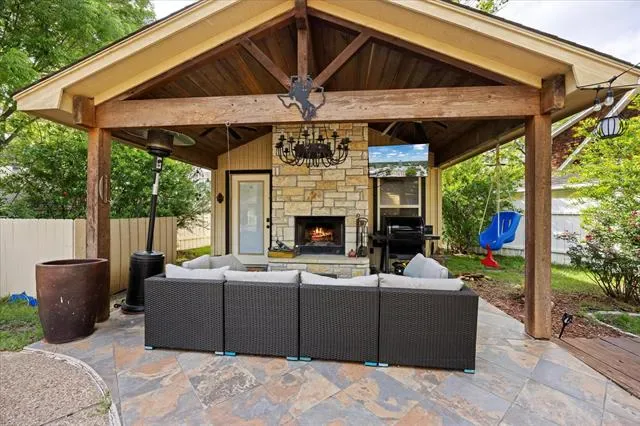 Courtyard, Covered Deck, Covered Patio/Porch, Rain Gutters, Outdoor Kitchen, Outdoor Living Center, Storage