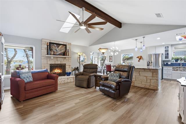 Updated and move-in ready home with great views of the 4th green and pond in Decordova Bend Estates. DCBE is an amazing gated neighborhood with golf, marina, pickleball, sand volleyball, tennis, clubhouse, restaurants, and great community feel. The seller has spent over $145,000 on upgrades since 2018. The open floor plan and huge kitchen island make entertaining a breeze. Updates include: luxury vinyl plank wood-look floors, granite countertops in kitchen and bathrooms, HVAC, driveway, golf cart driveway, epoxy garage floor, aluminum fencing, kitchen appliances, kitchen cabinet fronts, and many more. Covered and open patios across the back of home allow for great relaxing time watching the golfers or soaking in your private hot tub. You can access the hot tub patio directly from the primary bedroom. The garage is oversized and has room for 2 cars plus a golf cart garage space. A circle drive has room for guest parking.