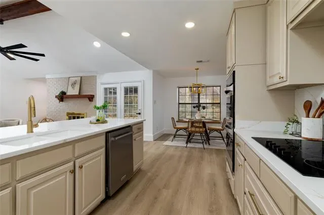 Built-in Features, Decorative Lighting, Double Vanity, Kitchen Island, Open Floorplan, Vaulted Ceiling(s), Walk- In Closet(s)