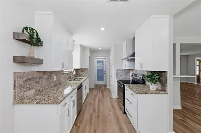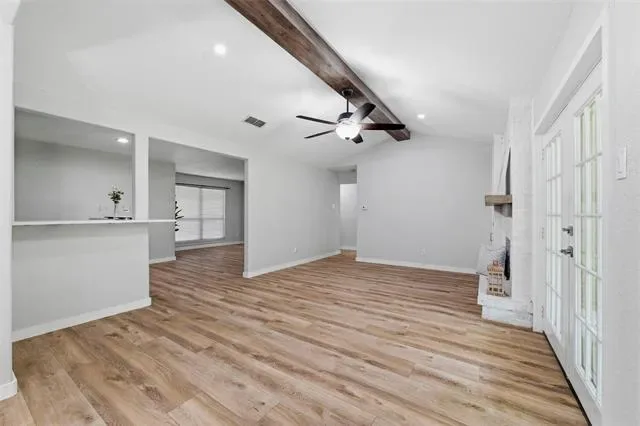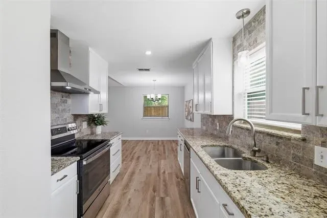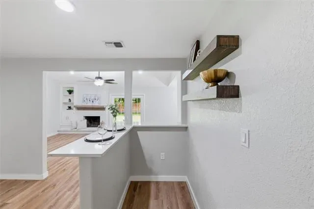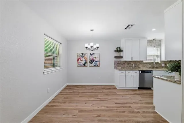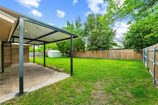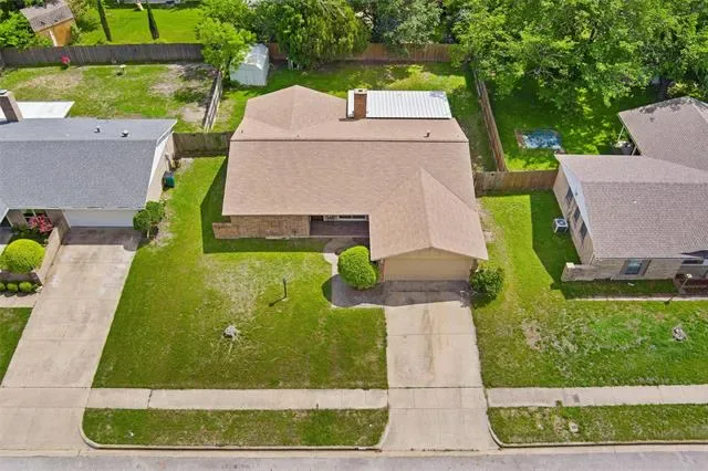 Built with classic brick and thoughtfully updated, this 3 bed, 2 bath home in Edgecliff Village offers comfort, style, and function. Recent improvements include all new windows in 2022, new flooring throughout the main living areas in 2023, a covered back patio added in 2024, updated countertops, and a new front door. Inside, the family room features vaulted ceilings with a striking beam detail that creates a true focal point, along with a brick wood burning fireplace, built-in shelving, and an open layout connecting the kitchen, dining, and living areas. The kitchen includes white cabinetry, updated countertops, a wall mounted range hood, and a wet bar addition. Both bathrooms have been refreshed with updated vanities, framed mirrors, and tiled surrounds. The primary suite offers a walk-in closet with built-in shelving. Out back, enjoy a large fully fenced yard with a storage shed, a mature shade tree, and a new covered patio perfect for entertaining. Conveniently located in Edgecliff Village just minutes to I-35W and I-20, Hulen Mall, Kroger on McCart, Clearfork dining and shopping, Benbrook Lake, and short drive from Downtown Fort Worth and Sundance Square.