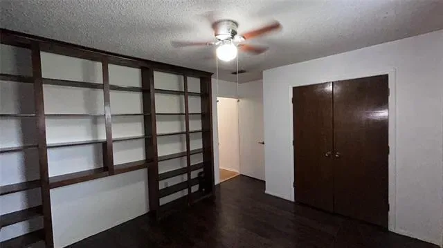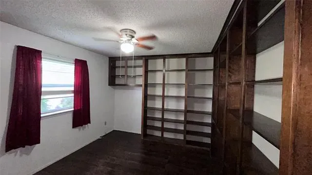 The primary suite offers dual vanities, walk-in closets, and a tiled walk-in shower. Secondary bedrooms provide good storage, and the 4th bedroom with built-in bookshelves is ideal for a home office or library.