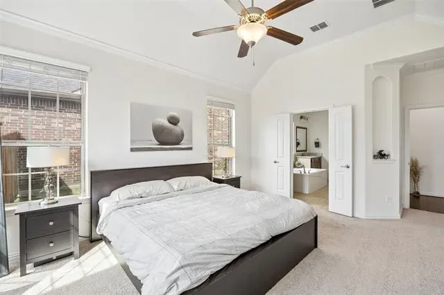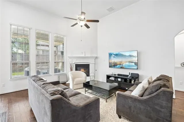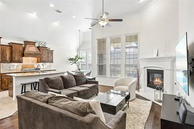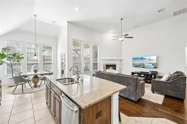 Beautiful, move-in ready home that has been meticulously maintained and thoughtfully updated throughout. The roof was replaced in 2021 and enhanced with two attic fans for improved energy efficiency. Enjoy outdoor living on the extended patio featuring an Apex covered structure &' built in gas fireplace, complete with lighting and an outdoor fan—perfect for relaxing or entertaining. The interior was freshly painted in 2023, creating a clean and inviting atmosphere. Additional upgrades include epoxy flooring in the garage, added attic flooring for extra storage, a side-mount garage door opener with an insulated door, and granite countertops in the bathrooms. The seller has taken exceptional care of this home over the past 12 years, and it truly shows. The open-concept floorplan offers abundant natural light and a spacious layout ideal for both everyday living and hosting guests. Media room is great for relaxing or entertaining. Conveniently located just minutes from DFW Airport, with easy access to Dallas, Fort Worth, and Frisco. Enjoy nearby parks, shopping, dining, and schools. Community pool is great for those warm summer days without the maintenance of having a pool. Schedule your private showing today—this is a gem you don’t want to miss!
