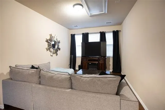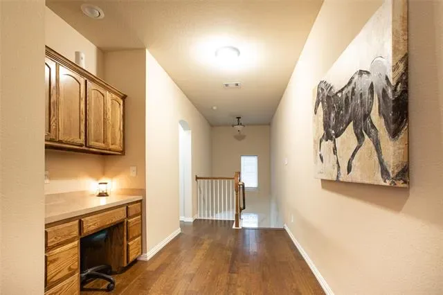 Well-maintained and thoughtfully designed garden home in highly sought after fully gated community with quick access to DFW Airport, American Airlines headquarters, major highways, dining, and shopping. This 3-bedroom, 2.5-bath plus home office home offers a flexible layout with a dedicated private office downstairs plus an additional desk or study nook upstairs perfect for working from home or homework space. Enjoy two separate living areas, one downstairs and one upstairs, allowing room for everyday living and entertaining. Wood floors run throughout the home, adding warmth and continuity. The kitchen is open to the living and dining room and features granite countertops, stainless steel appliances, and ample storage. The laundry room is conveniently located upstairs. The spacious primary suite is a true retreat, complete with a large ensuite bath featuring separate vanities, a soaking tub, separate shower, and an oversized walk-in closet. Additional highlights include a rear-entry two-car garage, a private yard that’s easy to maintain, and access to neighborhood amenities including a private playground and pond. A great combination of comfort, convenience, and location in a secure, well-kept community.