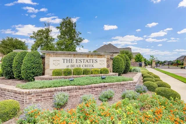 Welcome to The Estates at Bear Creek, an exclusive gated community offering elegance, comfort, and unbeatable convenience in the heart of the Metroplex. This stunning one-owner, like-new 2018 home features 5 bedrooms, 4.5 baths, TWO FIRST FLOOR PRIMARY SUITES, a private office with french doors, a game room, media room, and a covered patio.