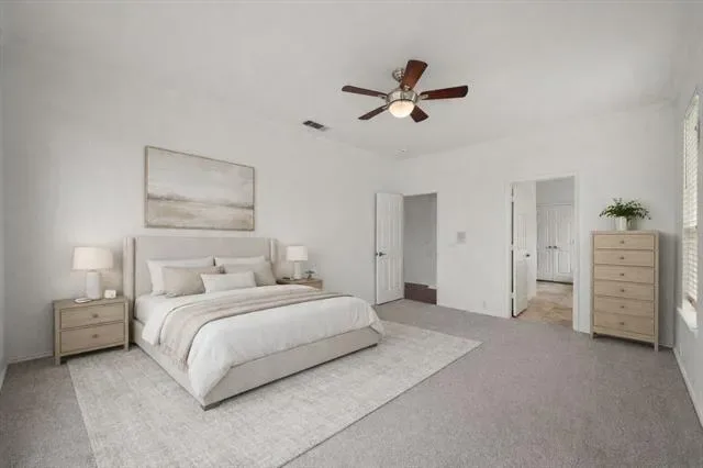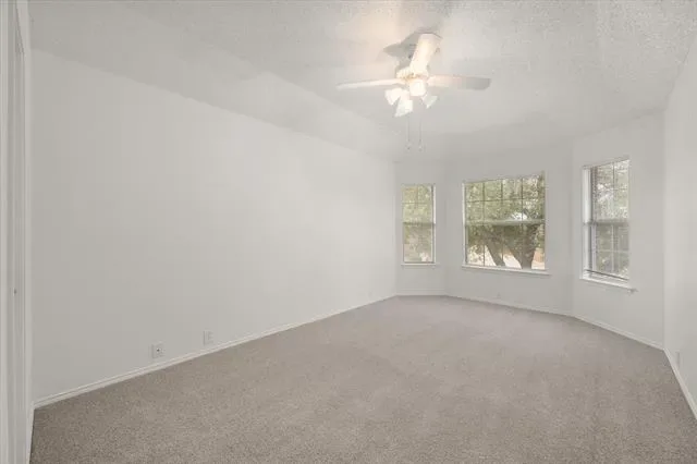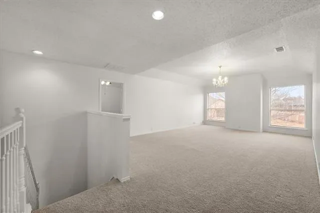 The primary bedroom is conveniently located downstairs and has been refreshed with new paint and carpet, providing a private retreat. Upstairs, you’ll find three additional bedrooms, a full bathroom, and a generous game room—perfect for a playroom, media space, or home office. New paint and carpet throughout the second floor add a clean, updated feel.