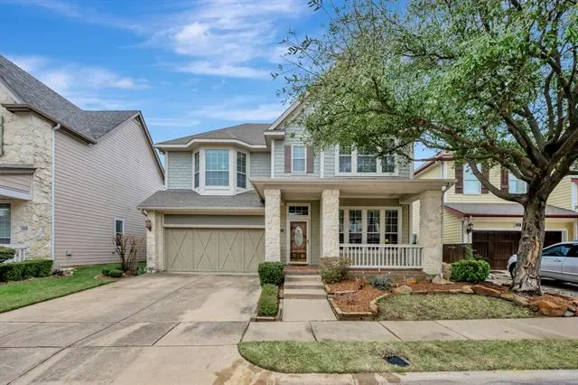 This inviting home offers comfort, charm, and convenience in a quiet, established section of the neighborhood. A welcoming covered front porch sets the tone for relaxed living. Inside, hardwood floors extend throughout the downstairs, and the living area features a cozy gas log fireplace that creates a warm and inviting gathering space. A tankless gas water heater adds modern efficiency. The kitchen is both functional and stylish with black granite countertops, a breakfast bar, pantry, gas cooktop, oven, and refrigerator, making it ideal for everyday living and entertaining. The spacious primary suite provides a peaceful retreat with a bay window, garden tub, dual vanities, separate shower, and a generous walk-in closet. Upstairs, a unique library area features custom built-ins and a ladder, creating a charming and functional space for reading, working, or displaying a collection of books. Built-in features throughout the home add both character and practical storage. Step outside to a private backyard with a stone firepit and a fenced yard, ideal for relaxing evenings. Enjoy the ease of low-maintenance living with HOA covered front and backyard care, along with access to neighborhood ponds and a greenbelt where walking trails and local wildlife can often be seen. Just across the street, Bob Eden Park and Bear Creek Park offer an impressive array of outdoor amenities including playgrounds, walking and biking trails, baseball and soccer fields, tennis courts, &' sand volleyball. The location is exceptionally convenient with quick access to DFW Airport and major highways. Everyday essentials are close by, with Lowe’s directly behind the neighborhood and Walmart just across Highway 121. The Glade Parks shopping district is less than a mile away. A new HEB grocery store is also scheduled to open this fall, adding even more convenience to this highly desirable area. Schedule a showing today to experience everything it has to offer in person.