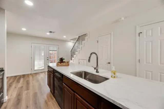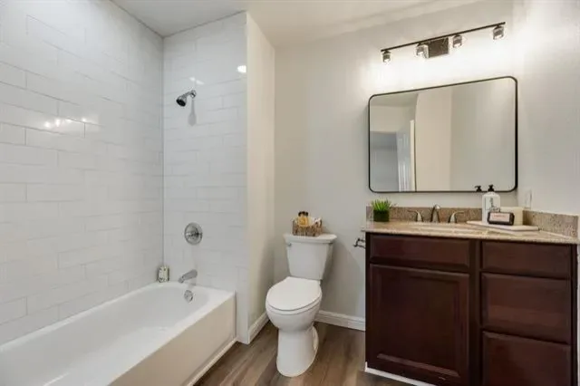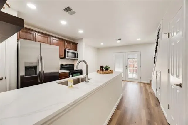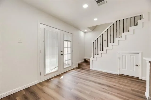 Wonderfully remodeled 2 bedroom town home with 2 full baths plus a half bath and walk-in closets in both bedrooms. Conveniently located minutes from DFW airport between Hwy 121 and Hwy 360 with an abundance of retail and restaurants near by and in GCISD. Huge Bob Eden Park with walking trails can be reached just out your back gate or from the trails near the Community pool. 2026 Updates include: new windows and solar screens, quartz kitchen countertops with under mount sink, Kohler faucet, new microwave, Luxury Tile Vinyl flooring throughout, tub shower surrounds and plumbing updated with white subway tile to the ceiling and convenient built in nooks, lighting fixtures and fans updated and LED can lights installed, fresh paint on walls and ceilings (no popcorn ceilings), new patio fence and gate, approximately 35K worth of improvements. Water and trash included in HOA dues. Fridge, washer and dyer to remain. End unit with private patio overlooking trees and green space. Built-in Storage closet on patio.
