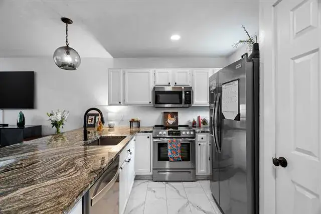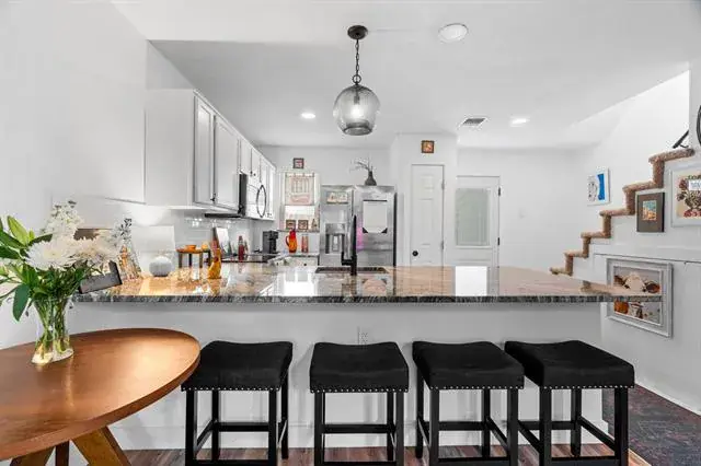 COMPLETELY RENOVATED!!! Welcome to this beautifully updated one-bedroom town home in the heart of Euless. With a unique Swiss Chalet–style community design, each townhome has its own character. This property has been completely remodeled with more than $70,000 in upgrades. Fresh paint, new flooring, windows, lighting, and fixtures give it a modern feel. The kitchen has been opened up to feature a striking granite breakfast bar, and all new appliances. The cabinets are recently painted with new hardware. New flooring of wood laminate and tile. The bathroom is fully redone with new shower tile, vanity, cabinets, and lighting. Additional updates include a new storm door, new vanity door, and a backyard complete with a brand-new fence and paver stones—perfect for relaxing outdoors. The HOA offers walking trails, and a pool for residents to enjoy. Ideally located near major highways 183, 121, and 820, and just 10 minutes from DFW Airport, this townhome offers convenience and style in one package. Don’t miss your chance to make this move-in ready home yours—schedule a showing today!