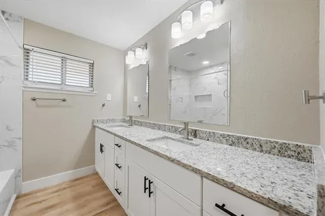 Welcome to 1200 Woodridge Circle, an extensively remodeled 4-bedroom, 3-bath 2 car garage home offering over 2,500 square feet of refined living space in the heart of Euless. This thoughtfully updated home blends timeless design with modern functionality. Upon entry, you are greeted by an inviting interior featuring fresh paint, updated flooring, and abundant natural light throughout. The spacious layout is ideal for both everyday living and entertaining. The main living area provides generous space for gathering and seamlessly connects to the beautifully renovated kitchen. Designed with both style and practicality in mind, the kitchen showcases updated cabinetry, sleek granite countertops, contemporary fixtures, and ample storage. The well-appointed primary suite offers a private retreat, complete with an updated ensuite bath featuring modern finishes and a comfortable layout. Three additional bedrooms provide flexibility for family, guests, or a dedicated home office. The secondary full bath has also been tastefully updated to reflect the home’s cohesive design and a convenient half bath enhances the home’s functionality for guests. The two-car garage provides additional storage and convenience. Outdoors, the backyard presents an excellent opportunity to create a personalized space for relaxation or entertaining. Ideally positioned with easy access to major thoroughfares, shopping, dining, and local amenities, this move-in-ready property delivers both comfort and convenience within an established neighborhood setting. A rare opportunity to acquire a fully remodeled home of this size and quality in Euless.