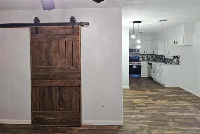 Step inside to discover fresh interior paint, luxury vinyl flooring, a fully updated kitchen, and an updated bathroom. The converted garage has been transformed into a media room, making it ideal for movie nights, game days, or a flexible bonus space. Each bedroom is generously sized, while the primary bedroom offers a private retreat tucked away from the rest of the home.