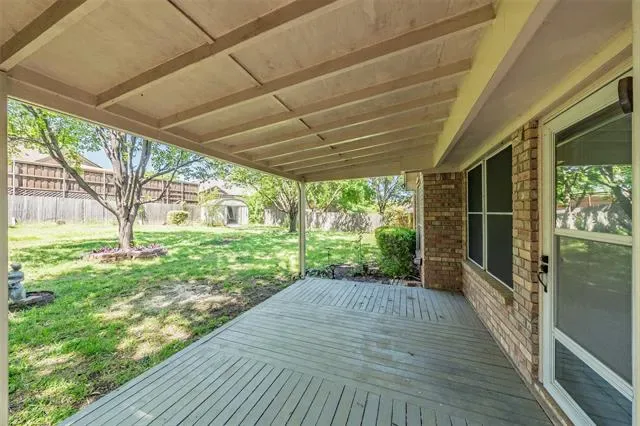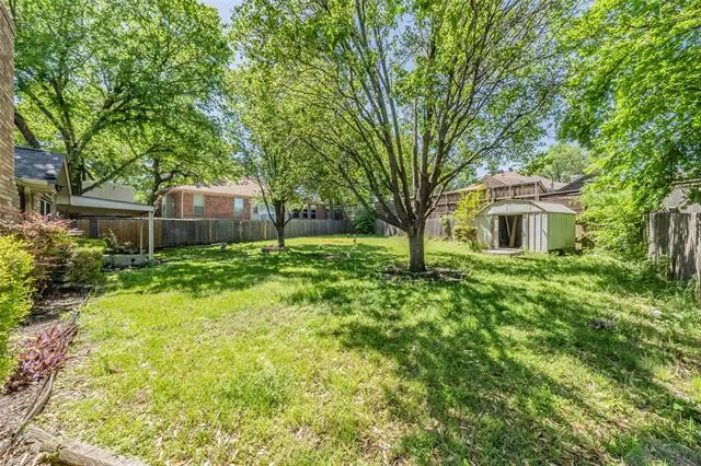 Super Cute, move-in ready, and ideally located, this charming single-story home is ready to welcome you! Step inside to a spacious formal dining room, perfect for gathering with family and friends. The home offers not one, but two generous living areas, including a cozy main living room with a fireplace and a secondary living space ideal for relaxing or entertaining. The kitchen is designed for both function and style, featuring a large breakfast bar, abundant cabinetry, and an electric cooktop and oven, perfect for bringing out your inner chef. The oversized primary suite serves as a true retreat, complete with an ensuite bathroom offering dual sinks, a separate shower, a jetted tub, and a large walk-in closet. Three additional full-sized bedrooms and a secondary full bath provide flexibility for family, guests, or a home office setup. Step outside to a spacious backyard featuring a covered patio, perfect for enjoying quiet evenings, and a large grassy area ideal for play, pets, or outdoor entertaining. A convenient storage shed adds extra space to keep tools and equipment organized while keeping the garage clutter-free. Located within Hurst-Euless-Bedford ISD and just minutes from Highway 183, parks, schools, shopping, dining, and more, this home offers both comfort and convenience. Move-in ready and perfectly situated, come see it today, this one won’t last long!