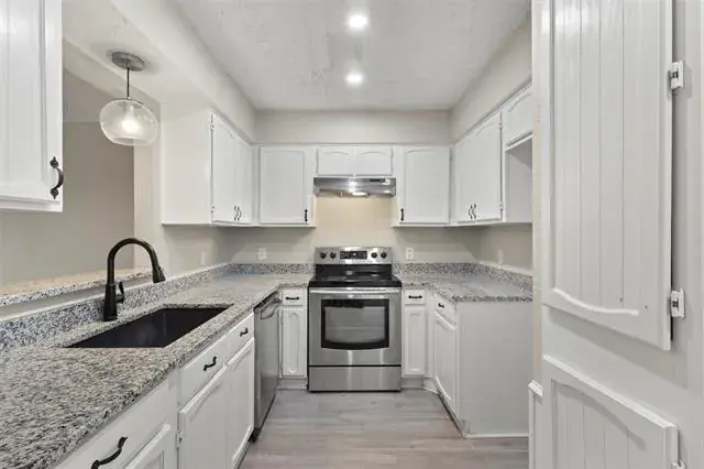 Wonderful opportunity to purchase a home in Euless located in Grapevine Colleyville ISD for under $350,000. The half-duplex is completely move in ready, split floorplan with three bed and two bath. The kitchen offers granite counter tops with stainless steel appliances. Wood tile flooring throughout main living. Vaulted ceilings with an electric fireplace to ensure a warm and cozy living area. Additional upgrades include AC, bathroom toilets and shower and sod. A wooden gate will grant you access to the covered carport behind the home and additional yard space plus a two car covered carpot. 1-0 LENDER PAID BUYDOWN or a lender credit with our preferred lender. *Virtual Tour Available*
