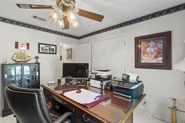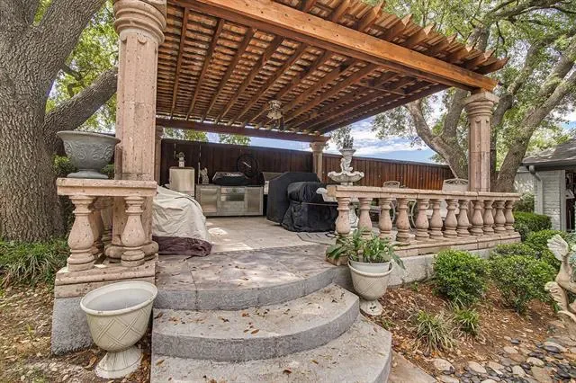 Welcome to this elegant and enchanting home in the heart of the metroplex. Walk through this immaculate home and you can tell this it is well loved! This 4 bedroom, 2.5 bath home has a thoughtful, easy living design with natural light in most rooms. Thoughtfully designed for entertaining, you will find a gorgeous wet bar in the den and a chef loving kitchen with double ovens. Then choosing your retreat for relaxation, will it be the the den with a cozy fireplace, the oversize media room or perhaps the sundrenched sun room.. Enjoy you evenings and weekends in you own private oasis back yard. The huge fountain, lovely landscape and outdoor dining is as beautiful to cook in as well as enjoying nature. This home is centrally locate in a quiet neighborhood, yet only a 13 minute drive to the DFW airport. The garage is a mans paradise boosting a big workshop inside and a separate storge unit outside. Schedule you appt to see today! You will not be disappointed. Agent is related to seller