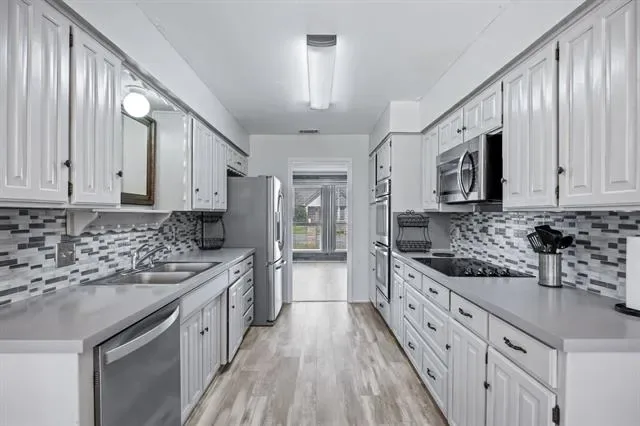 The kitchen features dual sinks, double ovens, electric cooktop, and a bright breakfast area. The spacious primary suite boasts dual sinks, jetted tub, separate shower, and a walk-in closet.
