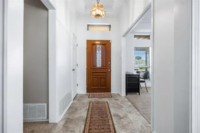 Enjoy a walk-in wet bar, crown molding, covered front porch, and a large backyard with covered patio—ideal for outdoor gatherings or relaxing evenings. Sprinkler system included.