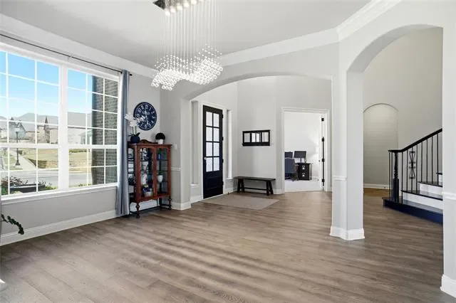 The kitchen is the heart of the home, complete with a large center island, walk-in pantry, and seamless flow into the breakfast nook and living area—ideal for both everyday living and entertaining. A formal dining room provides additional space for gatherings.