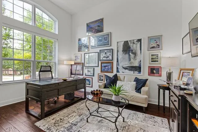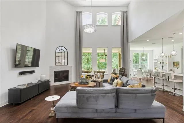 Discover your dream home in the master-planned community of Canyon Falls. Spanning over 3,900 square feet, this exceptional residence blends elegance, comfort, and functionality in a truly unforgettable setting. Greeted by stunning hardwood floors, you’ll step into a welcoming foyer that opens to a sophisticated formal dining room—ideal for entertaining. The expansive living area is the heart of the home, featuring soaring 20-foot ceilings, a cozy gas fireplace, and abundant natural light. Fall in love with the gourmet kitchen, a chef’s dream outfitted with high-end KitchenAid stainless steel appliances, 5-burner gas cooktop, convection oven, Quartz counter-tops, and spacious walk-in pantry. The flexible floor plan ensures privacy and comfort, with a luxurious primary suite tucked away on the main floor, complete with a tranquil bath and an incredible three-level walk-in closet. A secondary bedroom with its own ensuite bath and walk-in closet provides the perfect retreat for guests. Ascend the curved wrought-iron staircase to find a large game room and media room—ideal spaces for movie nights or family fun. Two additional upstairs bedrooms are thoughtfully placed and each has access to a full bathroom. Step outside to your peaceful backyard oasis, featuring a covered patio—perfect for relaxing or entertaining. Enjoy resort-style living with community amenities that include two swimming pools, jogging trails, a fitness center, playgrounds, and front yard maintenance. With so much to offer, you''ll never want to leave!