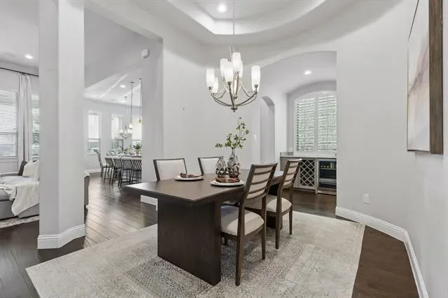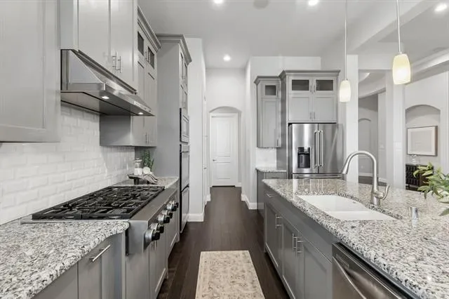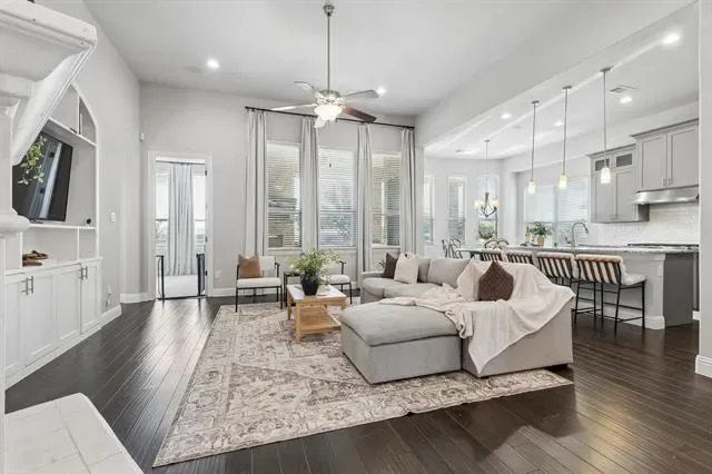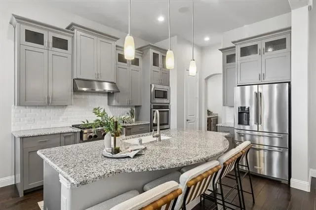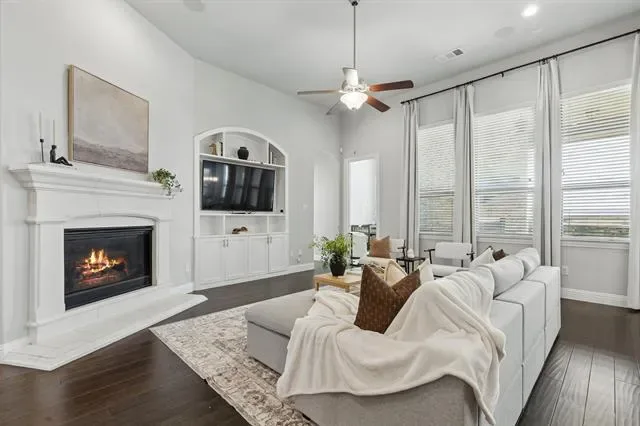 Welcome to refined living in the highly sought-after community of Canyon Falls. This beautifully crafted 1.5-story residence blends timeless design with modern comfort, offering 4 bedrooms, 3.5 baths, &' thoughtfully designed living spaces. Upon arrival the home makes a striking impression with its stone &' brick façade, mature landscaping, and grand wood &' iron entry. Inside, rich wood flooring leads you through an open-concept floor plan designed for effortless entertaining &' everyday living. At the heart of the home, the chef’s kitchen showcases a large center island, SS appliances, a gas six-burner range, double ovens, granite countertops, &' beautifully appointed cabinetry with glass accents. The adjoining dining space features a curved tray ceiling &' elegant serving bar complete with built-ins, wine storage, &' wine refrigerator. The family room is filled with natural light, stunning fireplace, custom built-ins &' surround sound, creating a warm yet sophisticated space. The private primary suite offers a serene retreat, complete with generous sitting area. The spa-inspired bath features dual vanities, soaking tub, an oversized walk-in shower with dual shower heads, &' expansive walk-in closet. Three additional bedrooms are located on the main level, including a versatile room with its own private exterior entrance—ideal for a home office or private guest suite. Upstairs, a spacious second living area provides the perfect setting for a media or game room, accompanied by a full bath. Step outside to your own backyard sanctuary where a covered brick patio, surround sound, gas fireplace and a beautifully designed outdoor kitchen create the perfect setting. Just a minute walk to new Flower Mound Park in addition to full access to all of Canyon Fall''s exceptional amenities: indoor state-of-the-art fitness center, two resort-style pools with a second splash pad, two additional playgrounds, scenic fishing spots, dog park, &' miles of walking &' biking trails included in HOA.