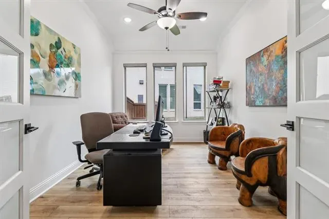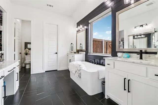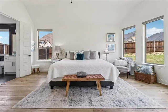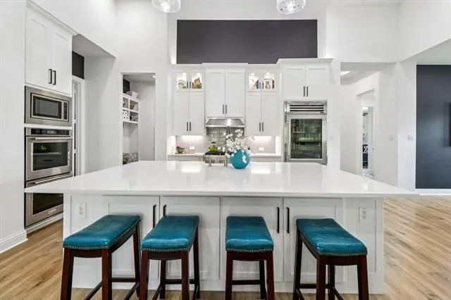 Step into a stunning retreat that surpasses model home expectations – crafted for the discerning buyer who values luxury, smart technology, and thoughtful design. Every detail has been curated for comfort and convenience, from motorized blinds that adjust with the sun to whole-home automation that adapts to your lifestyle. At the heart of the home, a dramatic 14-foot ceiling soars above the expansive living area, centered around a striking floor-to-ceiling black tile fireplace and delivering immersive 7.1 surround sound – perfect for both entertaining and everyday enjoyment. The open-concept layout flows into an epicurean’s dream kitchen, anchored by a Sub-Zero 36” PRO Glass Door Refrigerator Freezer and commercial-grade KitchenAid appliances, including dual microwaves, twin ultra-quiet dishwashers, and a powerful 6-burner gas cooktop. An oversized island, layered under, mid, and over cabinet lighting, and a secondary prep kitchen featuring a full-sized refrigerator freezer, stainless steel soaker sink and additional cabinetry complete the space with style and function. The primary suite features a tray ceiling and bow windows that fill the space with natural light. The spa-inspired bath includes dual vanities, walk-in closets, a freestanding soaking tub, and a large shower with both rainfall and traditional showerheads. The additional bedrooms offer comfortable accommodations with access to well-appointed baths. Twin five-panel WINDOOR accordion doors open to a Texas-sized covered patio with a second fireplace and room for a future pool, spa, and outdoor living. ENERGY STAR and LEED-certified, this home features low-flow fixtures, advanced air filtration, and smart climate controls. Located in the heart of Canyon Falls, enjoy over 10 miles of trails, resort-style pools, a splash pad, and a state-of-the-art fitness center. A rare blend of innovation, elegance, and community – this is luxury living at its finest. Owner is a licensed real estate agent in Texas.