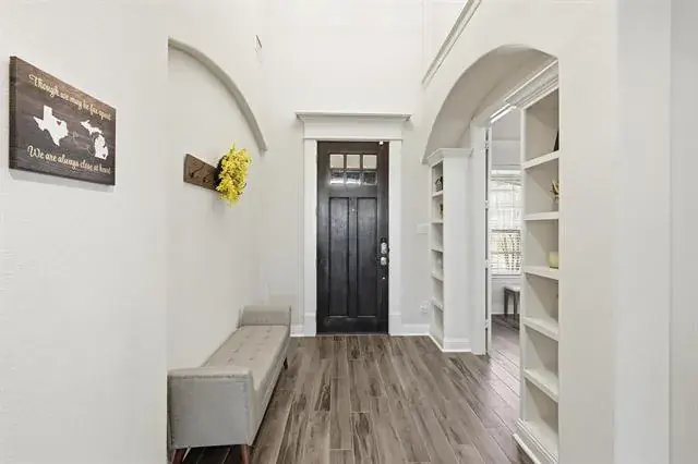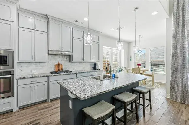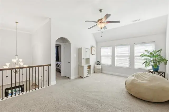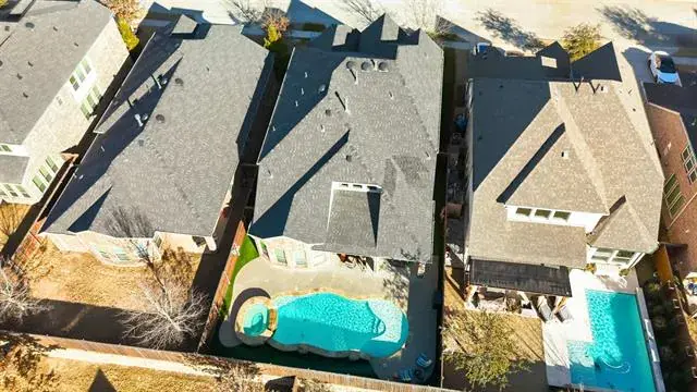 Experience the Triple Crown of Canyon Falls at 6371 Whiskerbrush Dr! This rare find offers the ultimate trifecta: prestigious Argyle ISD, Flower Mound taxes, and your own private pool oasis. This home welcomes you with an incredible amount of natural light, neutral tones, and a complete absence of carpet on the main floor. The entry leads past a dedicated private office into an elegant formal dining room, perfect for hosting. The heart of the home is the dramatic double-height family room, featuring an anchored fireplace and a stunning staircase. The gourmet kitchen boasts beautiful cabinetry and a layout that serves as a perfect white canvas for your personal style. The exquisite two-story floor plan features a dedicated front office, a main-level guest suite, and a gourmet island kitchen that flows seamlessly into the spacious living area. Retreat to the primary suite featuring a spa-inspired bath with dual vanities and a soaking tub. Upstairs, the entertainment options are endless with both a game room and a dedicated media room. Also upstairs, you’ll find two additional bedrooms—one with an ensuite bath and another tucked privately in the back with an adjacent full bath—plus a game room and media room. The backyard is designed for low-maintenance enjoyment, featuring a tranquil covered patio, a sparkling pool and spa, and professionally installed turf throughout the back and side yards. Recent updates include expansive tile flooring, upgraded primary bath countertops, and permanent exterior holiday lighting. Don’t miss this opportunity to own a piece of the Community of the Year in one of Northlake’s most sought-after locations!