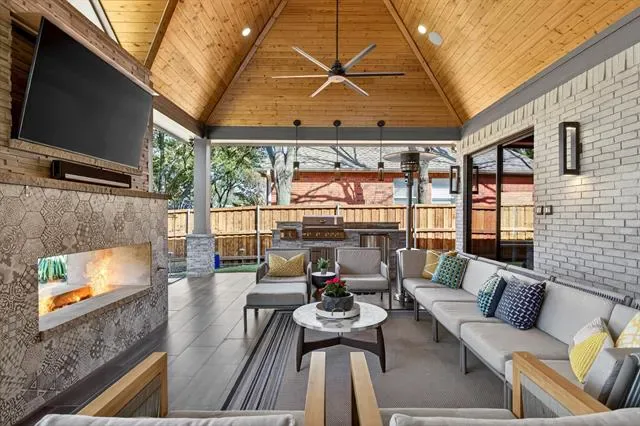 Attached Grill, Built-in Barbecue, Covered Patio/Porch, Rain Gutters, Lighting, Outdoor Living Center, Other