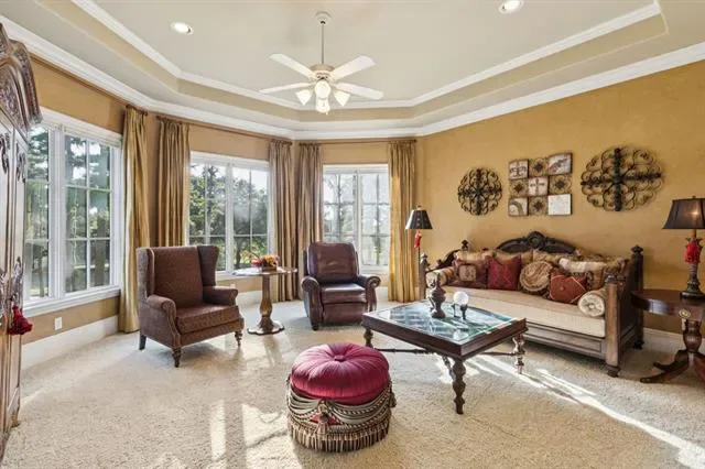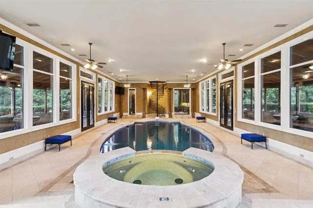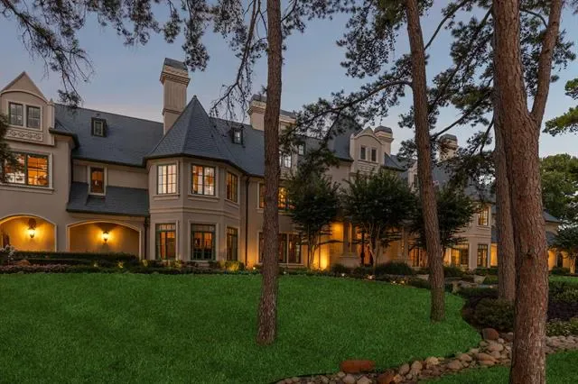 A rare offering of uncompromising elegance, this ultra-exclusive estate presents a lifestyle of prestige &' refinement on 2 secluded, tree-lined acres in Chateau Du Lac. Beyond the private guard gates, a sweeping arrival sets the stage for grandeur, leading to a palatial residence where every detail reflects timeless artistry &' modern indulgence. The grand foyer makes a breathtaking first impression w-a double staircase, glittering chandelier &' intricate millwork that whispers of estate-quality craftsmanship. Within, 7 luxurious bdrm suites, provide a sanctuary for both intimate living &' lavish entertaining. Formal living dazzles w-two-story windows, a Juliet balcony + a stately fireplace while the chef’s kitchen—a culinary masterpiece w-dual islands, professional-grade appliances, and bespoke cabinetry—caters to both quiet family dinners and grand soirées. The primary suite is nothing short of a private retreat: a fire-warmed sitting area, a spa-inspired bath w-a deep soaking tub + dual vanities, doors to a secluded patio + an expansive boutique-style wardrobe create a haven of indulgence. Entertaining is elevated to an art form w-resort-inspired amenities including a year-round indoor pool &' heated spa, an expansive enclosed patio designed to escape the Texas sun, a wine room, a private library + executive study, a billiards lounge w-a wet bar &' a state-of-the-art media room. Guests can enjoy private quarters in the full mother-in-law residence complete w-its own kitchen. Outdoors, manicured grounds, grand patios &' balconies provide a seamless extension of the living space. An elevator rises to the crown jewel of the estate: a rooftop deck that reveals stunning views offering an unforgettable backdrop for sunset entertainment or starlit gatherings. With 4 stately fireplaces, refined architectural details at every turn &' a setting of unmatched privacy, this estate is more than a home—it is a world of its own, crafted for those who command only the finest.
