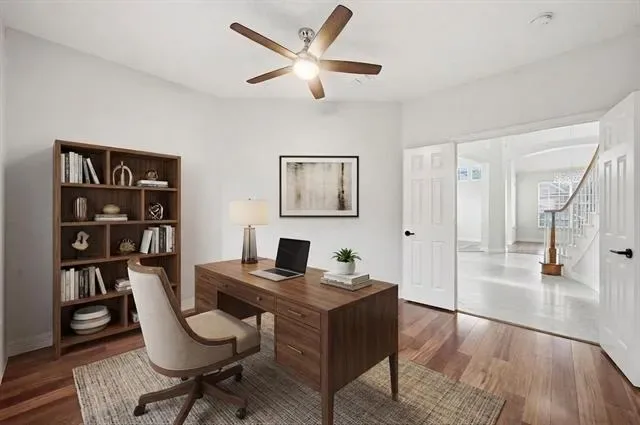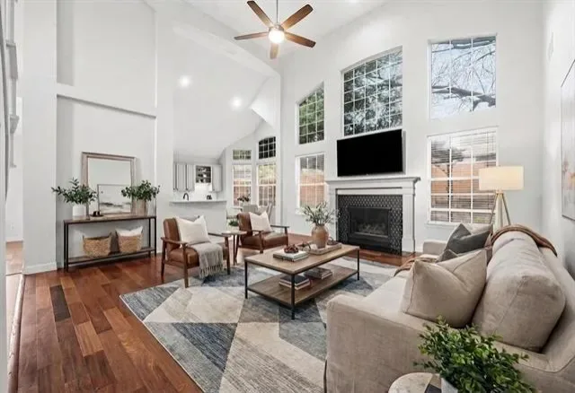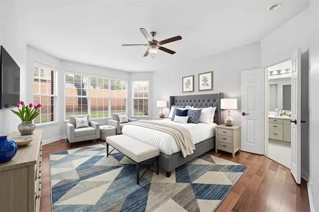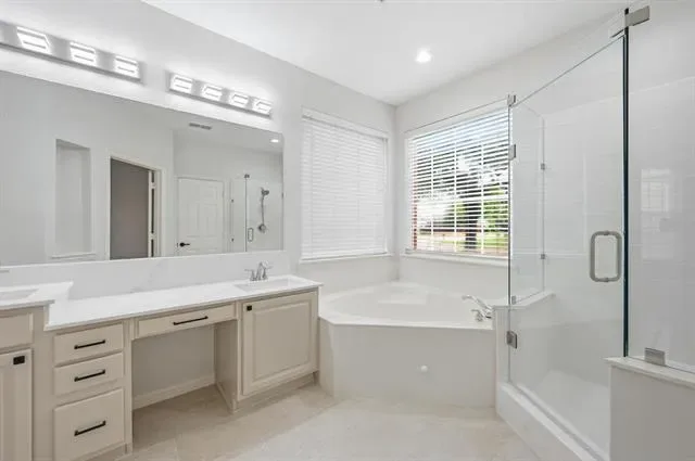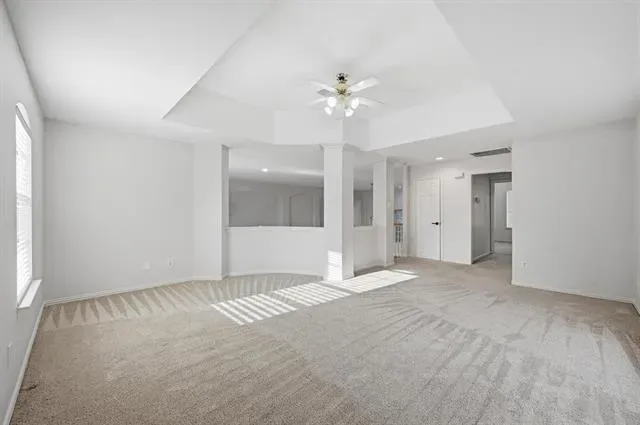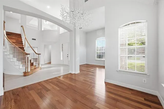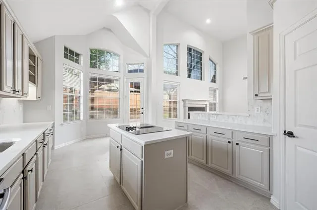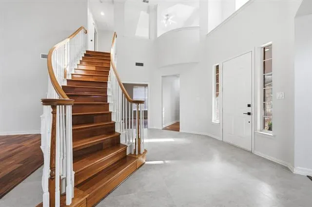 Elevated style, soaring ceilings, and a seamless open-concept floor plan take center stage in this stunningly updated home, perfectly situated in the heart of Flower Mound. Fresh paint, rich wood flooring, new carpet, crown molding, and decorative lighting create an inviting atmosphere throughout the home. The designer kitchen serves as a central hub for hosting, featuring freshly painted cabinets, quartz countertops, new stainless steel appliances, and a decorative backsplash. A built-in planning center in the breakfast nook adds daily functionality, while the walk-in pantry provides ample storage. The family room anchored by a cozy fireplace flows naturally into the remodeled primary suite, which offers a spa-like experience with a frameless shower, soaking tub, dual-sink quartz vanity, bay window sitting area, and a large walk-in closet with built-ins. A dedicated home office with a closet provides a quiet workspace or flexes as a fourth bedroom. Upstairs, a massive game room offers endless possibilities for play or media. Your daily routines become effortlessly streamlined in a laundry room where the washer and dryer convey alongside a utility sink and built-in cabinetry designed to keep your home organized and your life beautifully simplified. Relax outdoors in your spacious backyard, featuring mature trees and a huge pergola-covered patio with a ceiling fan for year-round comfort. Enjoy an unbeatable lifestyle with top-rated schools and an array of shopping and dining destinations just moments from your front door. Take a first-person look at this gorgeous home! Click the Virtual Tour link to see the 3D Tour!