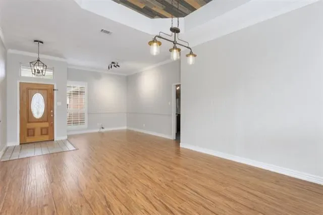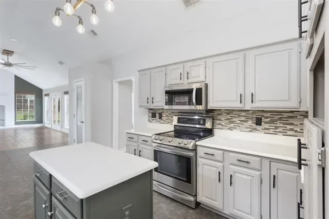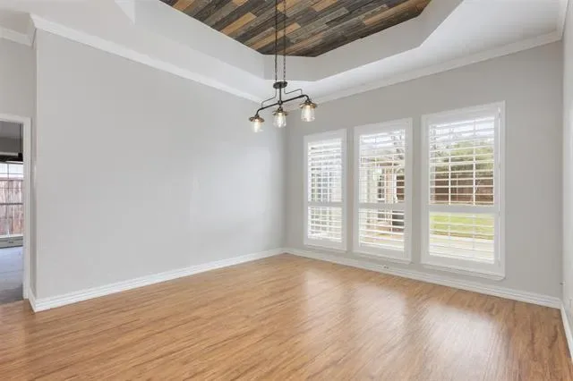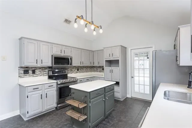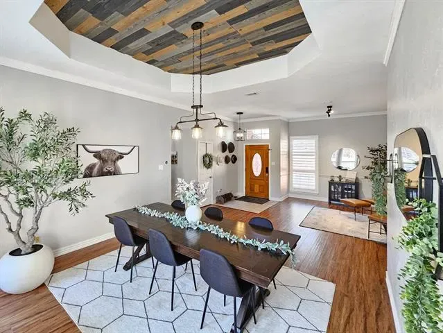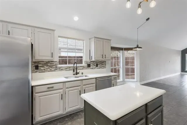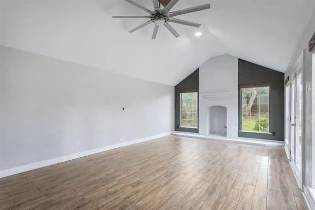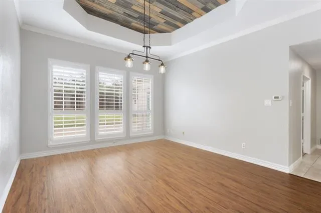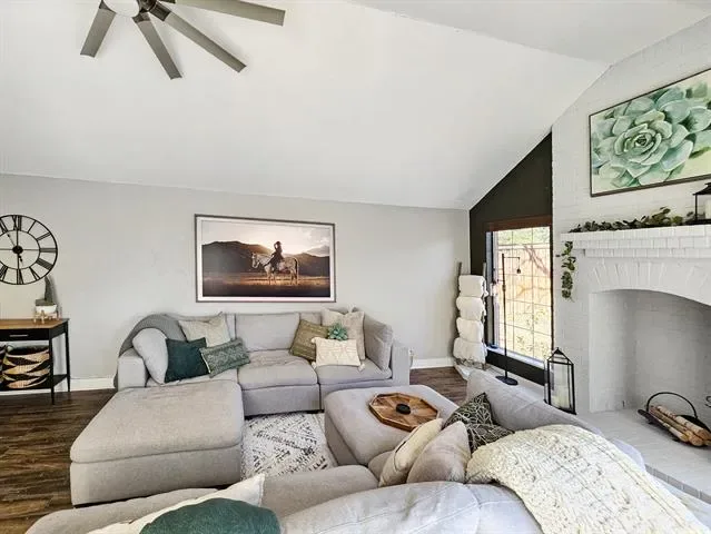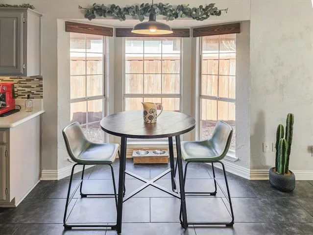 Beautifully updated and move-in ready, this unique-floorplan home offers standout style and comfort in the heart of Flower Mound for $500,000. Mature trees and plantation shutters create timeless curb appeal, while the interior features fresh paint, removed popcorn ceilings, and thoughtful upgrades throughout. The kitchen includes quartz countertops, a pantry, and a bright breakfast area that opens to a spacious family room with cathedral ceilings and an oversized fan. A bonus room showcases a floor-to-ceiling white-brick decorative fireplace with gas hookup and French doors leading to the large patio. The primary suite features a tub, double vanity, seamless glass shower, and linen storage. Two front bedrooms and formal spaces offer flexibility. The fenced backyard is perfect for Texas evenings, with towering trees, a storage shed, and a gardener’s planter.