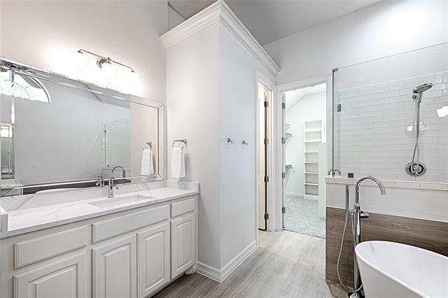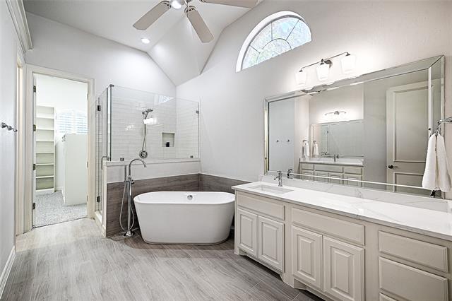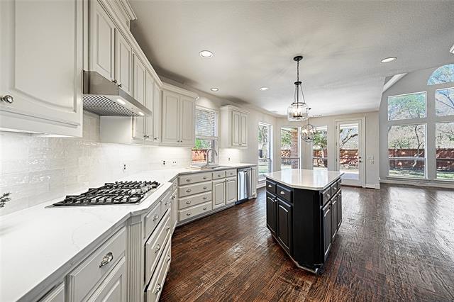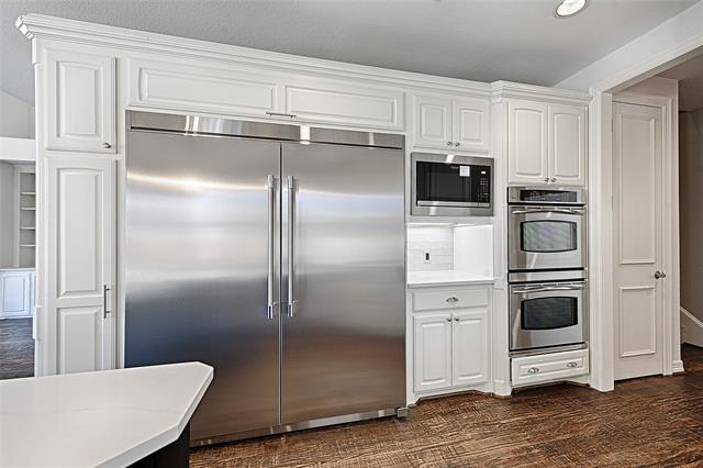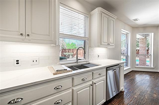 Traditional elegance meets modern refreshment in this beautifully appointed 5-bedrooom, 4-bath home in the highly sought after Bridlewood golf course community in Flower Mound. Designed for comfortable living and entertaining, the home features hand scraped hardwood floors, dual staircases, custom lighting, extensive built-ins, and whole-home sound wiring. The kitchen is updated with new quartz counter tops, new backsplash, and new appliances including cabinet depth column refrigerator freezer, microwave, vent hood, gas cooktop, plus new stainless steel workstation sink. The first-level spacious primary suite offers an updated primary bathroom with free-standing tub, new quartz double vanities, new sinks, new fixtures, and new tile. Fresh interior paint and new carpet installed February 2026 make this home truly move-in ready. Secondary bathrooms feature new quartz vanity tops, new sinks and new faucets. Enjoy a private backyard with sparkling pool and expansive patio ideal for hosting gatherings or enjoying quiet evenings at home. Residents enjoy Bridlewood amenities including tennis courts, two community pools, clubhouse, and scenic walking and biking trails.