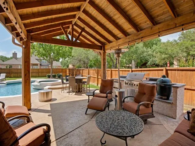 Covered Patio/Porch, Gas Grill, Rain Gutters, Outdoor Living Center