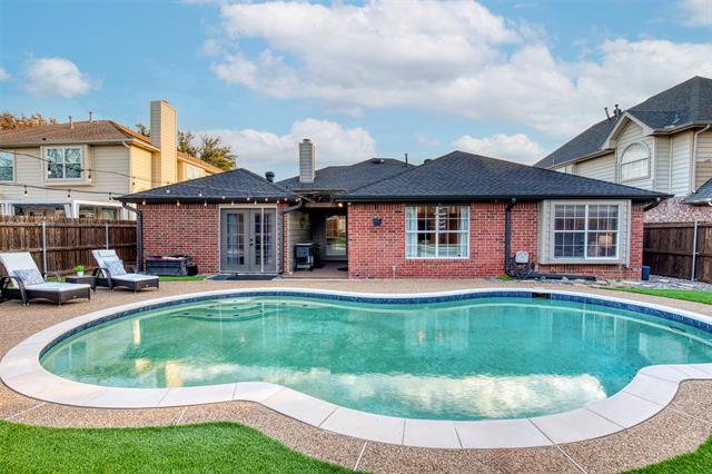 Welcome Home to this gorgeous one story home nestled in the heart of Flower Mound, Texas within minutes from Parker Square. No HOA! Featuring a backyard oasis with a sparkling pool, outdoor living and NEW luxury Turf. This beautiful 3 bed, 2 bath home features an extra large bonus living area with pool access. Incredible open and bright layout with a large living room with fireplace and built in shelving. Kitchen features granite countertops, ample cabinet space, a breakfast bar, and a generously sized eat-in area. The large owner’s suite overlooks the pool and backyard oasis featuring an ensuite bathroom with dual sinks, a garden tub, separate shower that has been recently updated, and a great sized walk-in closet. Don’t miss touring this beautifully updated home with an excellent layout and very conveniently located just a short drive from all major highways and an easy short 15 minute commute from DFW Airport and walking distance of the recently renovated Possum Park! Recently updates, New Turf in backyard 2025, HVAC 2022, Pool Pump and Dishwasher 2023, and significant upgrades Class 4 Roof, Gutters, and Exterior Paint 2024.