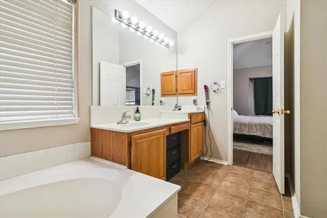 Amazing Flower Mound Single-Story home in a lovely neighborhood, with a split-bedroom floorplan offering privacy in this 3-bedroom home with 2 full bathrooms! New interior paint and numerous kitchen updates. Centrally located kitchen boasts a skylight, granite countertops, and matching appliances. Large living area in the front of the house with beautiful windows leading to the dining room. The den or second living area is in the back, right off of the kitchen and boasts a gas starter fireplace. There is also a mud room, ideal for pets and children, as you enter from the backyard which boasts a flagstone patio with pergola! The refrigerator is negotiable.
