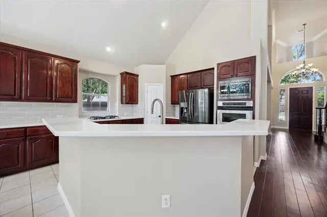 Exceptional Cul-de-Sac Home in Sought-After Flower Mound. Beautiful 4 bedroom , 3 bathroom. 3 car garage home with study on a spacious lot. Open floor plan with soaring ceilings and abundant natural light throughout. Kitchen features gas stove (installed 2025) and designer backsplash ( installed 2025), ample cabinetry, and generous prep space. Main level includes a private primary suite and dedicated study. Upstairs offers three secondary bedrooms plus a large media or game room and loft. Prime location within walking distance to parks, biking trails, and movie theater. Minutes to Lakeside shops and restaurants, Grapevine Lake, major highways, and DFW Airport. Zoned to award-winning Flower Mound schools.