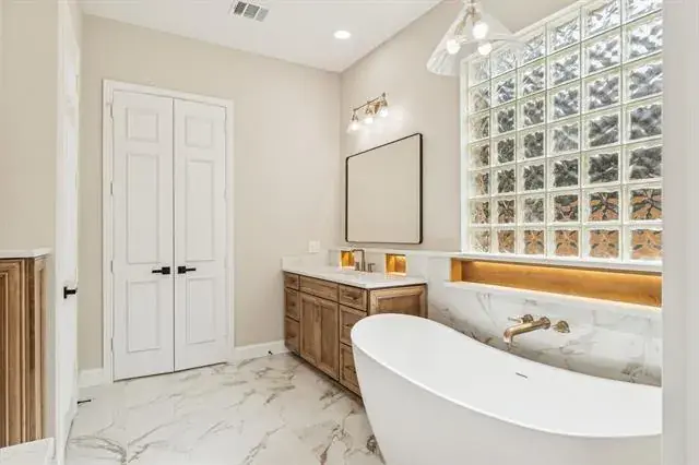 Beautifully remodeled from top to bottom, this stunning 5-bedroom, 5-bath Flower Mound home offers 4.402 sq. ft. of light-filled luxurious living. Every room has been thoughtfully redesigned, showcasing high-end finishes, quartz countertops throughout, modern custom cabinetry and updated flooring that ties the entire home together.
